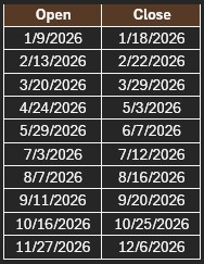 Open Date: 1/9/2026